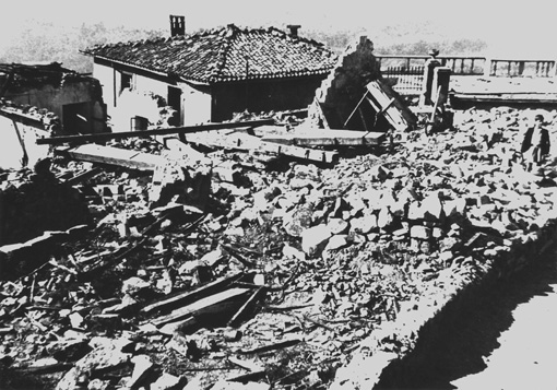 Nella foto, un’immagine della distruzione del paesedopo la battaglia del 26 dicembre 1944