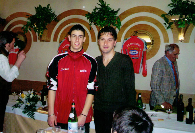 Nella foto Andrea con il campione Michele Bartoli il giorno della presentazione della sua squadra