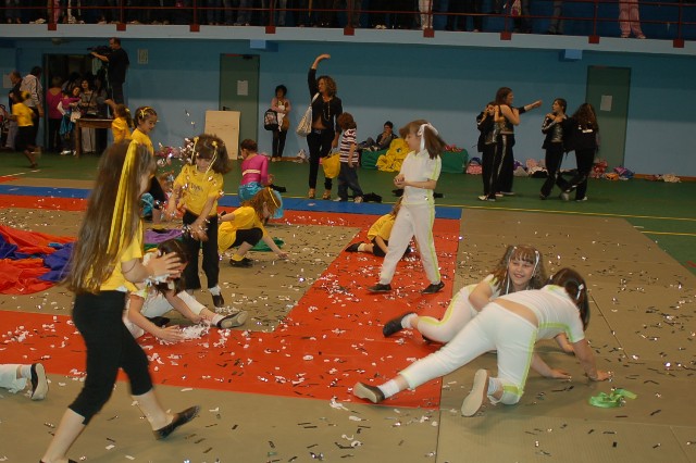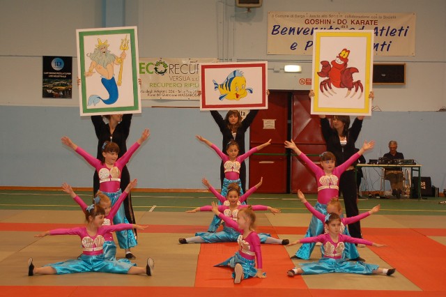 Il primo spettacolo è stato quello del “gruppo rosa” composto da bimbe di 5 anni che hanno presentato un balletto sulle note della colonna sonora del film animato La Sirenetta. Poi è toccato al “gruppo giallo” (7 -8 anni) con un balletto hip-hop sulle note di Eye of the tiger.