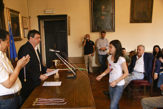Ecco tutti i premiati: per aver conseguito il titolo di campionesse provinciali di calcio Martina Balducci, Cristina Caproni, Chiara Ciucci, Elisabetta Bacci, Elisa Feniello, Margherita Coli, Eleonora Baldacci, Pamela Colognori, Irene Pieroni e Sara Paita; per aver conseguito il titolo di campionessa provinciale di nuoto, specialità Rana, Giulia Nardini; per il titolo di campioni provinciali di staffetta 4×100, Leo Torchia, Alessandro Montesarchio, Riccardo Rocchiccioli e Matteo Adami; per il titolo di campionesse provinciali di corsa campestre, Eleonora Baldacci, Elisabetta Bacci, Irene Pieroni; per essere giunti nella finale regionale di corsa, 80 metri, Laura Lucchesi e Matteo Adami. Premi sono stati consegnati anche ad Elio Pedrigi ed agli insegnanti che hanno seguito i ragazzi: Luigi Cosimini e Catia Diversi.