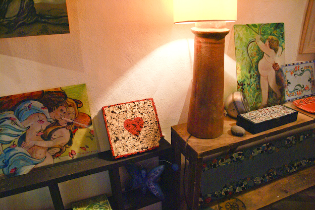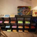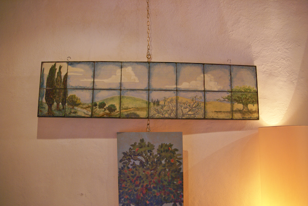 Lo studio che si trova in via di Mezzo è un piccolo mondo di cose belle: i simboli che si trovano sulle facciate del Duomo di Barga a decorare numerose mattonelle, il suo gatto che dà il benvenuto su un pannello in legno, balestrieri rinascimentali che trasmettono l’influsso dell’arte rinascimentale imparata a Firenze, paesaggi toscani, putti e figure decorative tra i tanti soggetti proposti con tratti e tecniche che contraddistinguono un pennello particolarmente felice.