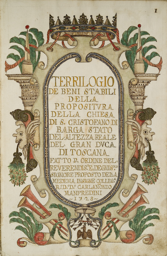 Con la scritta riportata sopra, incorniciata in un bel cartiglio lavorato e colorato con inchiostri policromi, sormontato da una corona reale e i basso chiuso da un cappello prelatizio recante sotto un’aquila reale, ha inizio il primo Terrilogio barghigiano di Domenico Cecchi, il quale descriveremo nella cose più importanti o curiose.