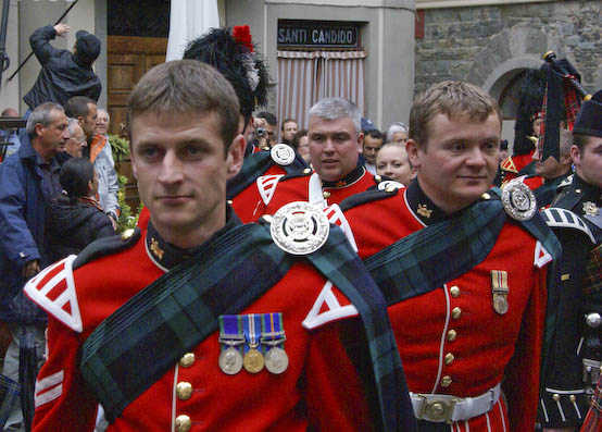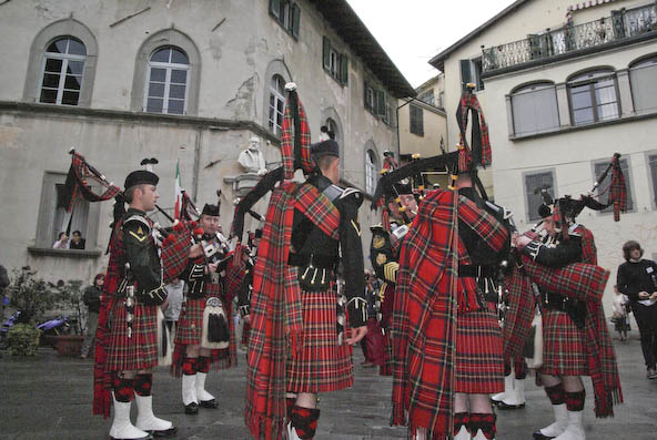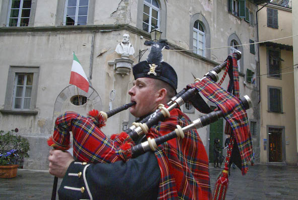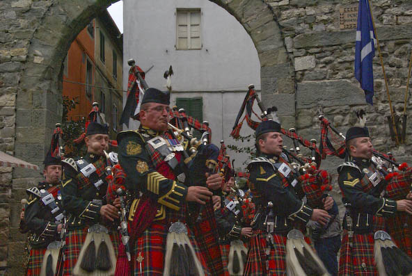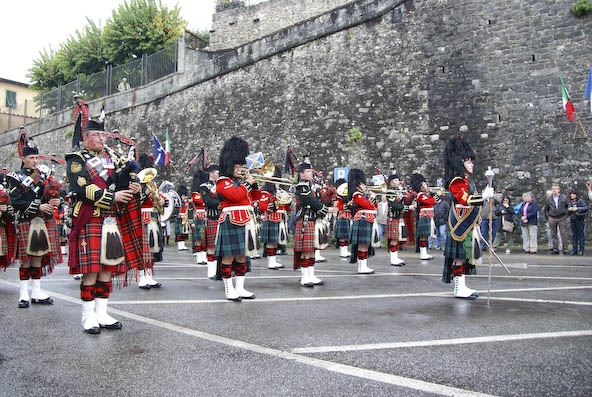 Nella “the most scottish town of Italy” oggi è stato un tripudio alla tradizione musicale scozzese con il bellissimo concerto della Banda Reggimentale del Royal Regiment of Scotland e di cornamuse, tamburi e danzatori del 1° Battaglione del Royal Regiment of Scotland – The Royal Scots Borderers.Oltre a Lucca, dove si esibiranno domani, è stata l’unica esibizione proposta in provincia di Lucca, in omaggio alla scozzesità barghigiana, come ci ha detto Andrea Colombini, a capo della The Caledonian Academy of Tuscany che ha organizzato i due appuntamenti con le cornamuse scozzesi.In centinaia sono giunti a Barga, un po’ da tutta la Toscana, per assistere al magnifico spettacolo della musica, delle divise, del fascino british offerto dai soldati in kilt.La giornata si è aperta nel tardo pomeriggio in piazza del Comune da dove è partito il corteo delle due bande che poi si sono esibite, singolarmente ed insieme, sul Piazzale del Fosso gremito di gente.Affascinanti come sempre i componenti del Royal Scots Borderers con i kilt, le loro cornamuse, coi tamburi e con i danzatori che hanno regalato a tutti un bel po’ di Scozia. Bravissimi anche i componenti della banda reggimentale composta perlopiù di ottoni.