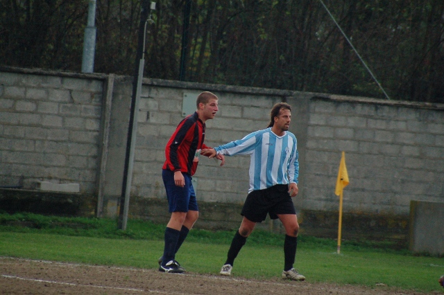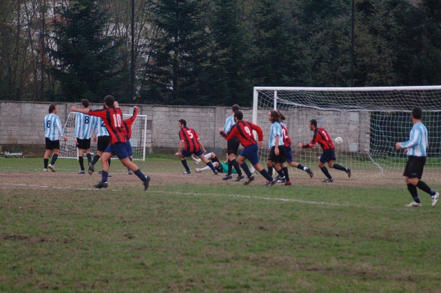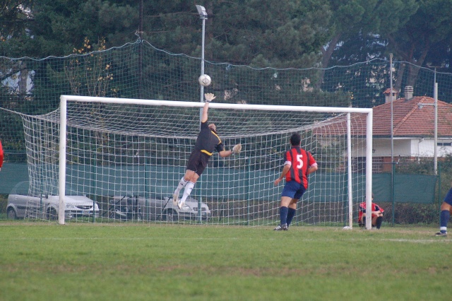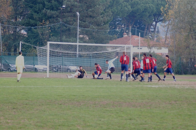 Nei primi minuti di gioco sono gli ospiti a mettere in difficoltà gli avversari. Al 5′ pt. prima occasione gol per gli ospiti: su un tiro di Miccoli, Suffredini tocca la palla con la mano e l’arbitro lo sancisce con un cartellino giallo, mentre gli ospiti vengono favoriti con una punizione dal limite centrale che sfuma in rimessa laterale. I padroni di casa si rilassano e ne approfittano gli ospiti sfruttando tutti gli spazi vuoti lasciati dai locali: al 13′ pt. Santa Caterina crossa per Bertini che con un bellissimo stacco colpisce la sfera che attraversa tutta l’area piccola difesa da Giannecchini, terminando fuori di poco; 18′ pt. tiro dalla distanza di Miccoli, bravo il portiere a non farsi trovare impreparato e a respingere in corner. La prima azione da gol per i padroni di casa è tardiva; infatti arriva solo al 20′ pt. con una punizione dal limite dell’area, laterale. Della battuta se ne incarica Grassi che colpisce troppo piano la palla spedendola peraltro fuori lo specchio della porta. Al 27′ rigore a favore degli ospiti, della battuta se ne incarica Miccoli che calcia piano e senza precisione, nessun problema per Giannecchini che respinge con i piedi un gol che poteva dimostrarsi pesantissimo. Nei minuti seguenti la partita è stata equilibrata per entrambe le squadre fino al minuto 43′ pt. quando l’arbitro concede una punizione laterale per i rosso/blu; della battuta se ne occupa Grassi che con una pennellata, fa arrivare la palla sulla testa di Alberigi che con un tocco segna 1 a 0.