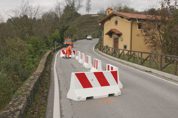scorso anno anche l’Amministrazione Comunale aveva segnalato la probabilità di un cedimento della strada in quel punto, oggi la Provincia di Lucca ha provveduto a transennare l’avvallamento costituendo un senso unico alternato.