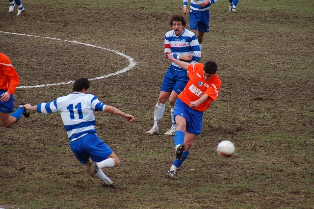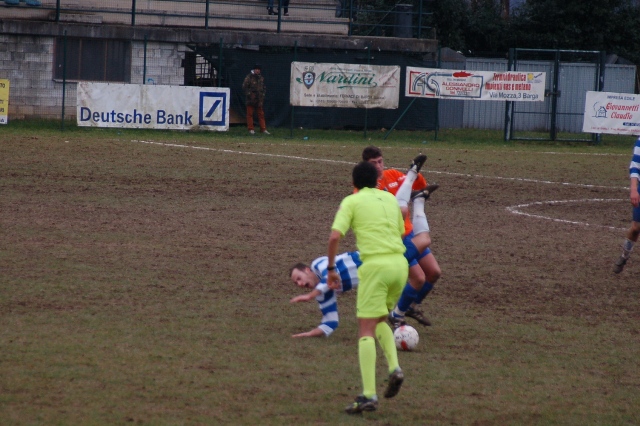 Una partita senza precedenti dove entrambe le squadre sentono molto la posta in palio ma sempre con un unico problema per il Barga l’arbitraggio: un fenomeno negativo che ormai prosegue da tre settimane.Il primo tempo si apre con entrambe le squadre che mostrano in campo di saper giocare, verticalizzare e mettere in difficoltà gli avversari. Prima palla gol del big match è di Pieraccini che su un cross calcia al volo e la palla finisce alta sopra la traversa. Un minuto più tardi la partita si scalda: Moriconi lancia Di Grazia che calcia a rete l’uno a zero annullato dal direttore di gara per netta posizione di fuorigioco. È al minuto 10′ pt. che si infiamma la partita: punizione dalla tre quarti per il Barga, della battuta se ne incarica Barbuti che fa carambolare la palla nelle vicinanze di Renucci che viene atterrato. Il direttore di gara che si trovava nei pressi , decide di sanzionare l’azione con un calcio di rigore a favore della squadra di casa. Al dischetto va Barbuti che con grande freddezza spiazza Pieri segnando l’1 a 0. Gli ospiti non si arrendono e al 16′ pt. mettono in difficoltà con un tiro da fuori Sartini che con un salto leva la palla direzionata nel set deviandola in angolo.