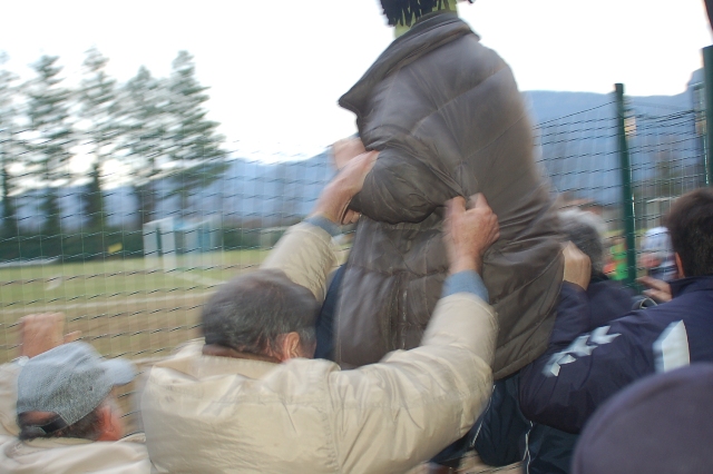 Pochi minuti più tardi, su un fallo di Renucci ai danni di Goldoni, l’arbitro decide di ammonire il giocatore delle file bianco-blu e di conseguenza arriva l’espulsione per somma di ammonizioni. Il Barga rimane in dieci uomini ma nonostante ciò al 25′ pt. Barbuti fa sognare tutto lo stadio regalando un euro gol a tutta la tribuna: palla a piede salta due uomini, si gira e con uno splendido pallonetto preciso inganna Pieri e segna la sua prima doppietta. Il Borgo dopo il secondo gol subito in superiorità numerica, non riesce a reagire e lascia campo e palla agli avversari. Al 36′ pt. Di Grazia viene espulso per reazione su Fontana. A questo punto la partita si riequilibria, ma a “parità” dura poco perche al 48′ pt. l’arbitro decide di concedere per un’entrata scomposta di Porta che prende il pallone ai danni di Goldoni che accentua la caduta, l’espulsione per il giocatore bianco-blu e rigore per il Borgo battuto e marcato da Bertolla.