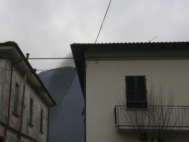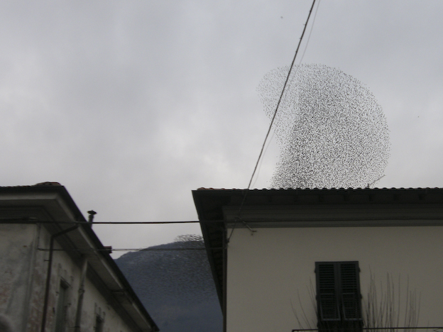 Uno stormo di storni sorvola il paese con acrobazie elegantissime disegnando con il volo figure incredibili; migliaia di uccelli volteggiano fluidi e perfettamente sincronizzati restando sospesi nell’aria alcuni minuti per poi andarsi a posare sui pini del Campone. In tanti si fermano a guardare questa meraviglia, magari chiedendosi il perché di questo comportamento.