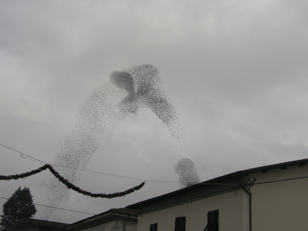 In realtà, quello che a noi sembra tanto speciale è solo una normale procedura per difendersi dai predatori, poiché volando in gruppi così ampi gli storni scoraggiano il nemico e si proteggono vicendevolmente. La cosa insolita, a parte essere uno spettacolo inedito in queste zone, è la recente ricerca condotta dal Cnr che ha dimostrato con lunghe osservazioni e successive elaborazioni di immagini come le evoluzioni in volo di questi uccelli possano essere presaghe degli andamenti dei mercati e delle oscillazioni di borsa, nonché di altre attività della vita sociale degli umani (leggi l’Articolo).