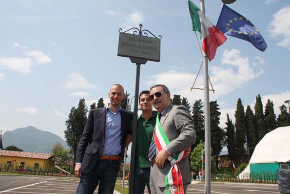 A scoprire la targa con il nome di Lunatici i nipoti, con la presenza anche del figlio Alessandro.