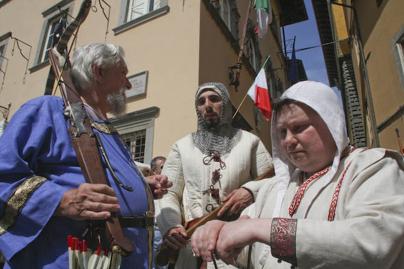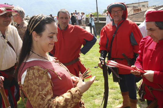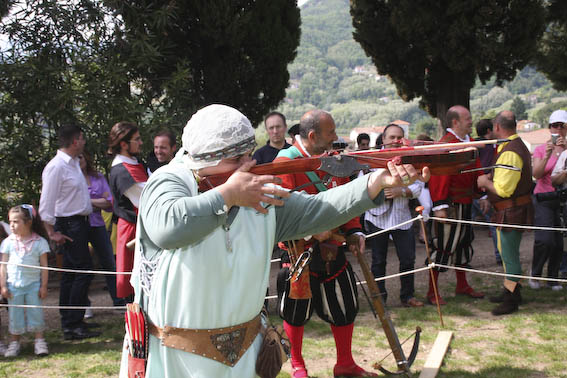 Giornata particolarmente intensa quella che si è vissuto oggi domenica 10 maggio nel centro storico di Barga dove sono tornati i giochi della balestra di “Calendimaggio”, accompagnati dalla edizione mensile del mercatino dell’artigianato.Tanta gente si è così riversata nell’antico castello pieno di bancarelle, ma soprattutto di una atmosfera di altri tempi che ha riportato Barga indietro fino ai suoi s