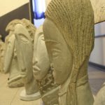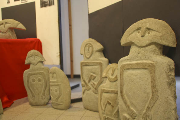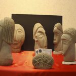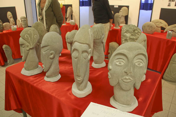 La materia prima utilizzata non è altro che sasso di fiume che il Serchio offre in molteplici forme e varianti; la fantasia di Lucchesi poi, trasforma questo materiale “povero” in volti e steli. Grande ispirazione per il suo lavoro viene dai ritrovamenti dei monumenti preistorici in pietra della Lunigiana, che rappresentano uomini, sempre con un pugnale, o donne con tratti estremamente stilizzati. Un altro tema caro a questo scultore è lo stile di Modigliani, ed infatti sono innumerevoli i profili in pietra dai lineamenti allungati tipici dell’artista livornese. Ma tra i pezzi in mostra ci sono anche volti dal sapore egiziano ed orientaleggiante, molto affascinanti; e visi ispirati semplicemente dalla forma della pietra trovata o che richiamano alla mente di Lucchesi persone conosciute durante la vita o della mitologia, come un curioso Giano bifronte esposto anche a Barga.