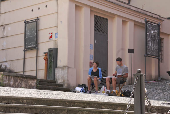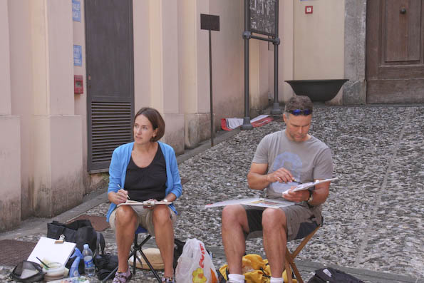 Oggi fuori dal Teatro dei Differenti si trovavano Meg Walsh, pittrice di paesaggi da Washington, e Hugh Greasley, pittore commerciale da Winchester (Inghilterra). Anche loro sono venuti a Barga per vivere la loro passione per il dipinto in un paese che hanno descritto come “bellissimo” e “unico”. La Master Class continuerà fino al 22 luglio e le opere degli artisti presenti sarannmo poi esposte nel museo delle Stanze della Memoria.