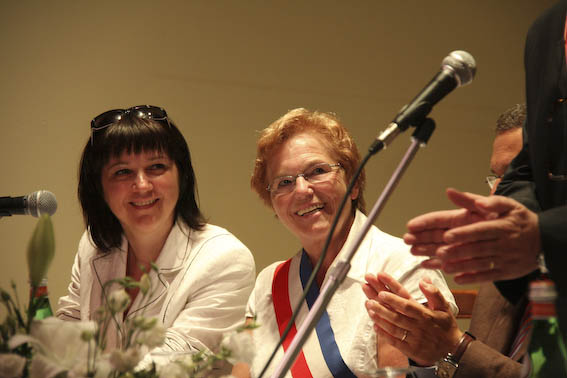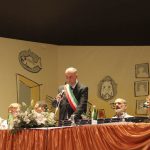 Sul palco, assieme a Bonini, il vicesindaco Alberto Giovannetti e la consigliere comunale Giovanna Stefani, l’assessore provinciale Mario Regoli ed il vicesindaco ed un assessore comunale di Hayange, a Barga per prendere parte alla processione di San Cristoforo.