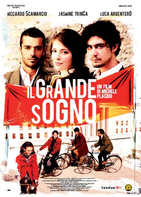 IL GRANDE SOGNOItalia 2009di Michele PlacidoNel 1968 un giovanissimo Michele Placido vestiva la divisa della polizia per potersi permettere gli studi all’accademia d’arte drammatica: con questa pellicola l’oggi affermato regista intende tornare indietro e riproporre, attraverso l’esperienza personale, gli anni della contestazione studentesca e delle lotte sociali che hanno rivoluzionato il XX secolo.Nicola Casella (Riccardo Scamarcio), ingenuo ragazzotto originario della Puglia, approda a Roma sognando il teatro e il cinema; in attesa dell’esame d’accesso alla scuola di recitazione, vivacchia alla caserma Castro Pretorio. Con il deflagrare della rivolta universitaria il giovane, date le sue doti artistiche, è mandato alla Sapienza dal comandante della caserma (cameo straordinario di Silvio Orlando) come infiltrato per raccogliere dati, nomi, immagini degli studenti contestatori. Tra questi, guidati dal carismatico Libero (Luca Argentero) studente operaio della FIAT, Nicola è
