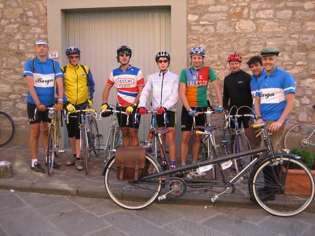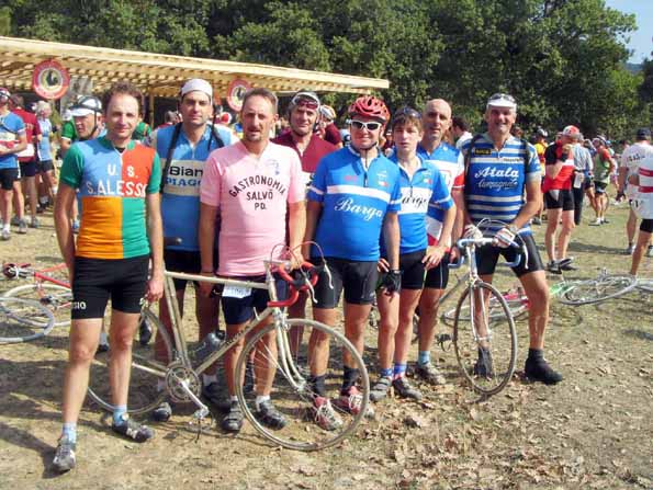 Il gruppo è partito capitanato dai “dirigenti” Chiappone e Foetta che però non hanno partecipato alla corsa. Tra i ciclisti impegnati nel percorso di 80 chilometri Stefano ed Antonio Elmi, Dimitri Da Prato, Fabrizio Giannotti al secolo Candele, Leonardo Giannoni detto anche Goscio, Riccardo e Giorgio Simoncini ed Andrea Mariani. C’erano anche i coraggiosissimi Alessio Barsotti ed Antonio Conti che hanno deciso di affrontare il percorso di 30 chilometri in tandem d’epoca.