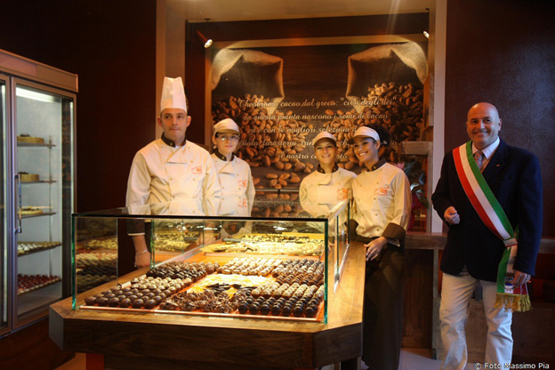 Golose novità commerciali a Fornaci, dove domenica 25 ottobre è stata inaugurata una cioccolateria artigianale. Theobroma, in via della repubblica 281, è in realtà una cicco-gelateria sopraffina, dove regnano praline di gusti diversi, semifreddi golosissimi, torte monumentali su richiesta, coppe di yoghurt genuino e gelato di prima qualità.