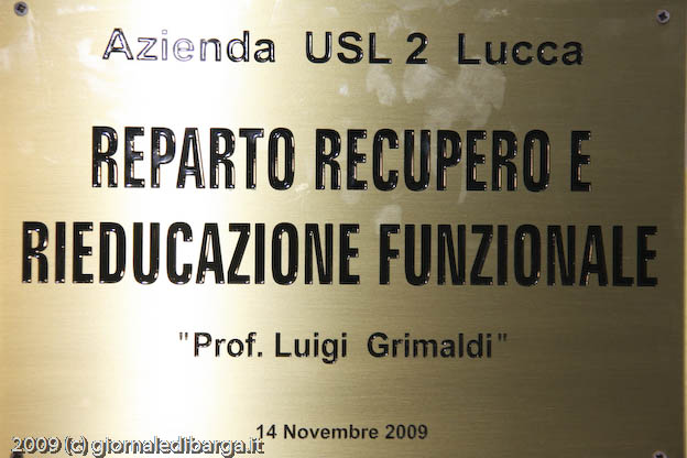 Dedicato alla sua generosità, alla sua grande passione ed alla sua competenza nel lavoro portato avanti in oltre dieci anni di guida del reparto di riabilitazione di Barga. Dedicato a questo suo reparto che grazie a lui è divenuto fiore all’occhiello dell’eccellenza della sanità lucchese in tutta la regione ed oltre. Dedicato alle sue metodologie innovative, punto di riferimento per chi pratuica la riabilitazione in tutta Italia.Questo il senso della targa che ieri mattina è stata scoperta presso la UO di Riabilitazione del “San Francesco” e che intitola il reparto al ricordo del dottore, o meglio il professore, Luigi Grimaldi.Una cerimonia, una iniziativa voluta dalla direzione dell’ASL 2 ed insieme dal sindaco Marco Bonini. e dall’ex presidente dell’articolazione zonale della Conferenza dei sindaci Umberto Sereni che in dieci anni di guida del comune di Barga ha creduto ed ha lavorato costantemente a sostenere il lavoro di Grimaldi.