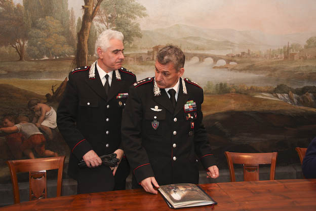 E’ dedicato al “Giuramento” il calendario storico 2010 dell’Arma dei Carabinieri, che stamani, presso la Prefettura di Lucca, è stato presentato dal Comandante Provinciale dei carabinieri col. Stefano Ortolani.Un nuovo pregevole calendario dell’Arma, vero e proprio oggetto di culto per i collezionisti, ma anche per i cittadini, che propone una serie di tavole artistiche realizzate da Luciano Jacus ed il cui filo conduttore è costituito dal tema del “Giuramento”, il momento solenne in cui ogni carabiniere si assume un impegno per la vita da mantenere ad ogni costo. Un rito che, come ha ricordato il col. Ortolani, ha accomunato generazioni di carabinieri di ogni grado nel corso di quasi 200 anni di storia dell’Arma e che il calendario 2010 ripercorre proponendo luoghi, gesta, parole e volti di quel momento solenne; dagli inizi fino ai giorni nostri in un gesto che è rimasto praticamente immutato nel tempo.La bella copertina del calendario raffigura il giuramento di un Carabiniere nei primi anni di vita del corpo, in una chiesa di Salluzzo, alla presenza di un ufficiale, un ecclesiastico, un giudice ed il sindaco, a testimonianza del profondo legame con la comunità che ancora oggi caratterizza l’Arma presente nei grandi centri come nelle piccole realtà.I dodici mesi del 2010 raffigurano nel tempo il momento solenne del giuramento in diversi contesti e con diversi protagonisti tra i quali il Generale Carlo Alberto Dalla Chiesa che si ritrova nel mese di giugno e la cui immagine è pubblicata insieme ad un ricordo dei figli sulla sua eredità spirituale.