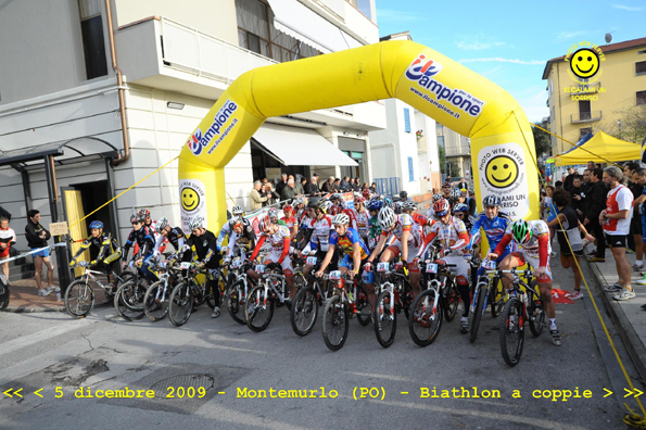 Grande battaglia a Montenurlo per la seconda prova del 1° Biathlon – Challenge di Natale 2009, organizzata magistralmente dall’ ASD Montemurlo sabato 5 dicembre. Clima perfetto e percorso disegnato nel bellissimo contesto naturale che si sviluppa da Piazza della Libertà alla Rocca che domina il paese dall’alto (gran premio della montagna del circuito), hanno fatto sì che prendessero il via 41 coppie, per una gara che prevedeva 3 giri da parte del ciclista, e due da parte del podista, con il cambio alternato ormai caratteristica saliente di questo Challenge. Il tratto più impegnativo del percorso di 4 chilometri e 160 metri, era costituito dalla salita, lunga e molto dura, che iniziava immediatamente dopo la partenza; dopo un veloce saliscendi che comportava frequenti cambi di ritmo, e l’attraversamento della Rocca, passaggio veramente suggestivo, il tuffo verso l’arrivo con la discesa molto veloce e molto tecnica nella quale i ciclisti hanno dato veramente spettacolo. L’arrivo in volata delle prime due coppie ha reso ancora più emozionante il finale di gara. Al termine della corsa, le premiazioni ed un ricco pasta party presso il circolo “Meucci Tamare”, hanno concluso un’altra bella giornata di sport. Sembra quindi che questo particolare Challenge stia riscuotendo sempre maggiore successo ed interesse, e pertanto l’appuntamento è con le prossime due prove che si svolgeranno a Filecchio di Barga il 12 dicembre, ed a Bagni di Lucca il 19, dove verrà anche effettuata la premiazione finale del Challenge, la classifica del quale è molto aperta (forse dopo la terza prova si avranno indicazioni importanti).E veniamo ai dati tecnici. Vittoria della coppia Fabbri Alessio-Collini Gherardo in volata su Orsucci Simone-Poli Graziano, già vincitori della