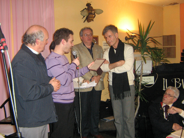 La serata non poteva che essere chiusa da una cena servita in chiare note di musica: “Bevute Stonate – Adagio di…Antipasti – Spartiti di Pizza – Contorni di Terzine – Do…lce di Petto e Caffè in Sol Maggiore”.