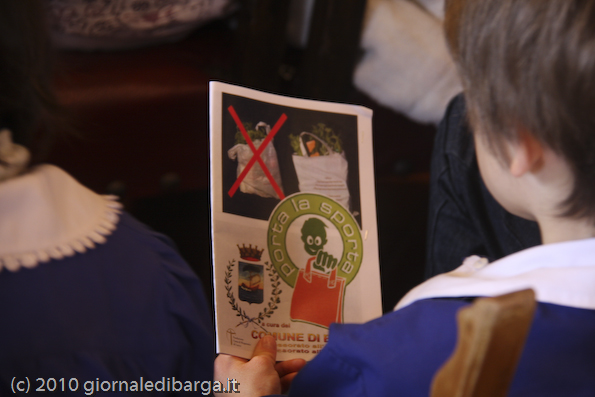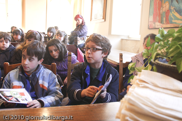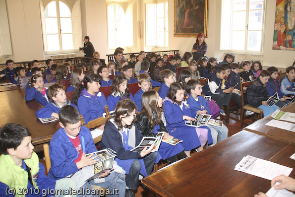 simbolico per sensibilizzare tutti, compresi i sessanta alunni delle quarte classi dell’Istituto Comprensivo di Barga che nella Sala Consiliare di Palazzo Pancrazi hanno incontrato il sindaco Marco Bonini, l’assessore Salvateci con i colleghi di Giunta, Renzo Pia, Gabriele Giovannetti, Vittorio Salotti, Alberto Giovannetti. Due classi arrivavano dalla primaria di Barga, mentre una quarta classe da quella di Fornaci. I piccoli alunni non sono arrivati impreparati perché a scuola per loro la tematica ambientale è di casa: partecipano infatti al progetto di educazione ambientale Infea. Così hanno messo alla prova con tante domande i due esperti presenti all’incontro, Luca Tortelli dell’Ufficio Tecnico Comunale e Paolo Maggi della ditta Aimeri che gestisce lo smaltimento dei rifiuti. Ai bambini e alle insegnanti sono stati regalati dall’Amministrazione un opuscolo informativo sul ciclo dei rifiuti e sul pericolo costituito dai sacchetti di plastica e una borsa in tela ecologica da portare a casa.