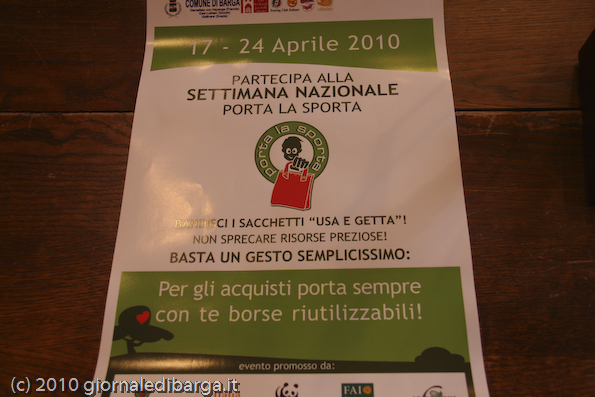 Hanno preso il via le iniziative programmate dall’Amministrazione Comunale in adesione alla nazionale “Porta la sporta” in programma da sabato scorso fino al 24 aprile.La campagna è promossa da WWF, Italia Nostra, Adiconsum e FAI; in tutta Italia aderiscono Regioni, Province, Comuni e anche aziende private.Nelle attività commerciali del comune questa settimana si possono trovare le borse in cotone riutilizzabili distribuite dall’Amministrazione comunale. L’assessore all’Ambiente, Giorgio Salvateci, ha seguito l’operazione che ha portato a mettere a disposizione delle attività commerciali e dei clienti la borsa ecologica riutilizzabile in stoffa, in alternativa all’inquinante sacchetto in plastica molto dannoso per l’ambiente. Un gesto
