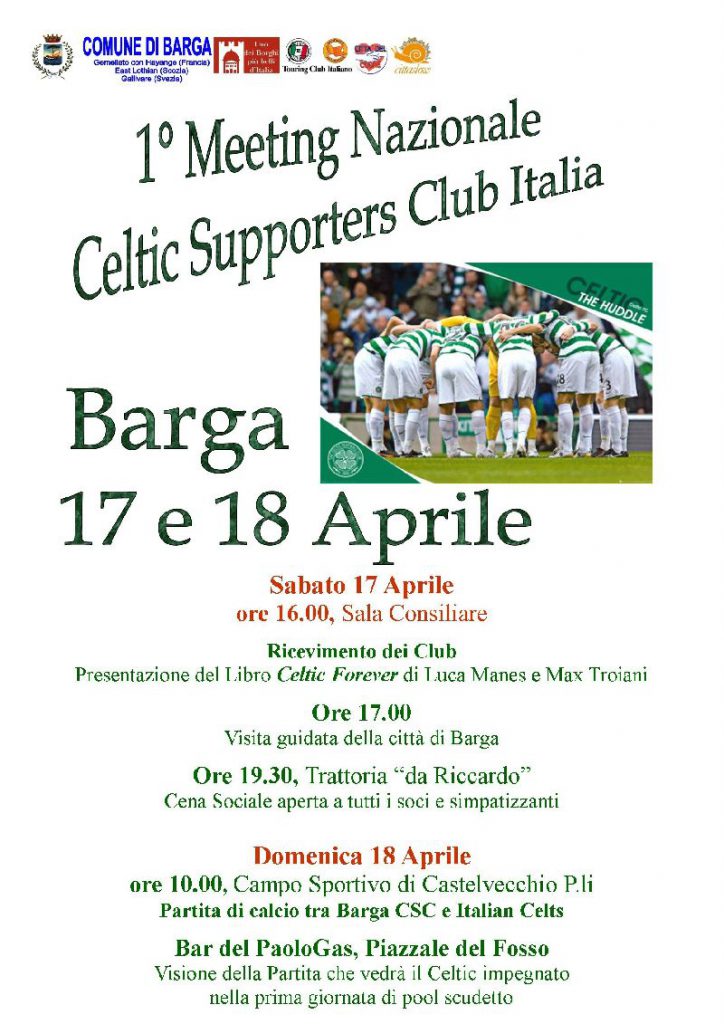 A Barga si incontreranno il nostro Barga Celtic Supporters Club (BCS), Italian Celts da Roma e il Celtic Club Udine.