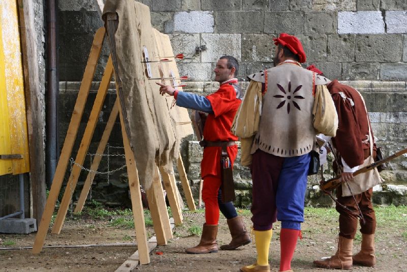 Il clou della manifestazione, quando finalmente si è vista un po’ di gente in giro, nel pomeriggio con il corteggio lungo il centro storico fino al Duomo e prosecuzione delle gare di tiro. Nell’ambito della gara la rievocazione “Pellegrini e cavalieri”, evento che ricordava la partenza dalla Valle del Serchio di un gruppo di crociati per la Terrasanta nel 1269. A concludere la giornata, prima delle premiazioni, un bel concerto di canti gregoriano in Duomo con i “Cantores lucenses” che hanno presentato canti liturgici in polifonia secondo i canoni dell’anno 1000.