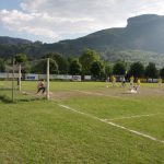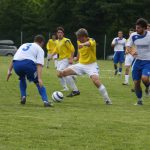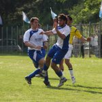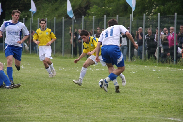 Partita molto sentita per entrambe le squadre che si giocano la prima partita di andata della finale dei play-off, parte subito forte la formazione di casa che si rende pericolosa con un tiro di Passini che termina di poco fuori dallo specchio della porta. La risposta degli ospiti non si fa attendere e all’ 11′ sfiorano il gol con un tiro di Del Soldato che su cross di un compagno calcia al volo spedendo sulla linea di porta, Franchi che si trovava nei pressi, con grande classe leva la sfera sulla linea. Brividi sulla panchina bianco-celeste che per un momento ha temuto la rete dello svantaggio. Al 16′ il Sacro Cuore si porta dalle parti di Guidetti, con un tiro piazzato di Catoni, deviato dal portiere in corner. La partita si fa ricca di emozioni con un buon calcio giocato per entrambe le squadre che si affrontano a testa alta. Al 34′ punizione laterale per i padroni di casa, alla battuta va Franchi che con un tiro forte e preciso cerca lo specchio della porta senza però trovarlo. Nel finale del primo tempo molte sono le occasioni da rete che si procura il Sacro Cuore senza però concretizzare a rete, contro un Sant’Anna difensivo.
