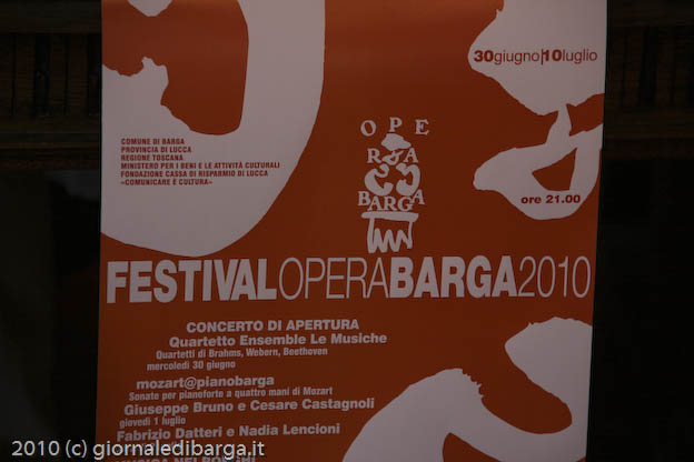 Tra le proposte del festival, come gli altri anni, PianoBarga e Musica nei Borghi. Per PianoBarga, nella raffinata cornice del Teatro dei Differenti di Barga saranno eseguite integralmente le sonate per pianoforte a quattro mani di W. A. Mozart, rispettivamente da Giuseppe Bruno e Cesare Castagnoli (1 luglio) e da Fabrizio Datteri e Nadia Lencioni (2 luglio).