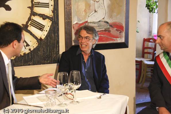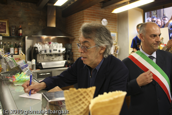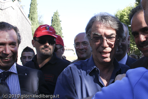 Assediato dagli ammiratori, il presidente Moratti si è mostrato da subito molto disponibile con tutti, firmando autografi e facendosi ritrarre in foto, e, scortato da un imponente servizio d’ordine organizzato dal comune, si è avviato tra due ali di folla verso il Teatro dei Differenti dove avrebbe ricevuto il suo riconoscimento. Nel percorrere Via di Mezzo si è fermato presso La Gelateria per salutare i gestori, suoi tifosi, e poi, insieme a Marco Bonini e Andrea Marcucci si è concesso un aperitivo al Mordimi in Piazza dell’Annunziata, dove ha conversato un poco ascoltando i cenni storici sulla storia di Barga. L’informale corteo è poi proseguito fino ad un altro locale del centro storico, il ristorante Scacciaguai, dove, sulla piccola ma panoramica terrazza, Massimo Moratti ha ammirato il panorama e chiacchierato amabilmente con i suoi accompagnatori.