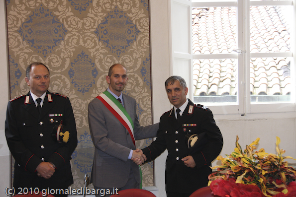 Barga perde con oggi una importante figura pubblica che in questi anni ha lavorato davvero bene al servizio della sicurezza di tutta la comunità. Da oggi ha lasciato il suo incarico di vice comandante della stazione Carabinieri di Barga il Maresciallo Capo Francesco Feniello, chiamato a comandare la stazione CC di Coreglia.Oggi pomeriggio, nella sala consiliare del comune di Coreglia il passaggio di consegne tra il comandante uscente, il Maresciallo Giovanni Mei, ed il nuovo comandante. Feniello giunge a Coreglia dopo aver svolto la sua opera a Barga per ben venticinque anni. Il Maresciallo Mei li ha ceduto il testimone dopo essere stato alla guida della stazione CC di Coreglia per quattro anni. Adesso comanderà la stazione CC di Lido di Camaiore.Per