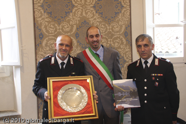 Per il Maresciallo Mei, un piatto ricordo dell’Amministrazione Comunale che ha consegnato un dono anche al nuovo comandante. Il sindaco Amadei nell’occasione ha ringraziato il comandante uscente per il prezioso lavoro svolto ed ha porto gli auguri di benvenuto e di buon lavoro al Maresciallo Feniello. Tanta la commozione del Maresciallo Mei e tanta anche quella del nuovo comandante Feniello che ha affermato che proseguirà a svolgere la propria opera , come ha fatto in questi anni a Barga, basandosi su fermezza, giustizia, umanità e fede e confidando nella collaborazione delle autorità e degli amministratori di Coreglia.