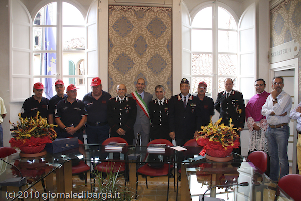 Per la cerimonia del passaggio di consegne in tanti hanno gremito la sala consiliare del Comune: molti amministratori e consiglieri, il comandante dei Vigili Urbani Fabio Biagioni, il vice presidente ed una delegazione dell’Associazione Carabinieri in Congedo di Fornaci, Danilo Finocchi, una delegazione del nucleo di Barga di protezione civile dei Carabinieri in congedo, con il vice presidente Sodini ed il coordinatore D’Alfonso, i rappresentanti di diverse associazioni di volontariato del territorio di Coreglia, il Proposto di Coreglia. Tra i presenti anche l’assessore alla Protezione Civile del comune di Barga, Pietro Onesti.