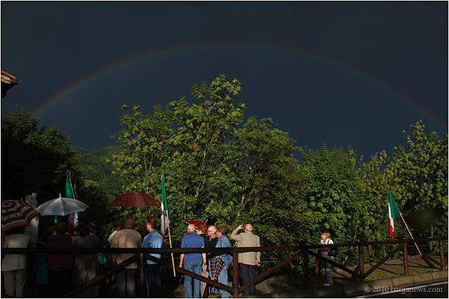 Un tempo da lupi, acqua e grandine, ha accompagnato la cerimonia che si è svolta presso la chiesina delle Palmente per celebrare la Madonna della Neve tanto cara agli Alpini che in questa ricorrenza si sono ritrovati presso la chiesina per ascoltare la preghiera alla Madonna pronunciata dal proposto di Barga, don Stefano Serafini. E siccome si trattava di Alpini, abituati al freddo ed alle intemperie, nonostante la burrasca sono stati in tanti a ritrovarsi sulla strada di Loppia per assistere alla cerimonia organizzata dal gruppo alpini in congedo di Barga.Sono giunte un po’ da tutta la provincia le penne nere per ribadire la loro devozione alla Madonna, accolti anche dal vice sindaco del comune di Barga, Alberto Giiovannetti. Nell’occasione, all’interno della chiesina, restaurata alcuni anni orsono e dedicata oltre che alla Madonna della Neve proprio agli Alpini che la curano e la conservano con tanto amore, è stata posta una targa che ricorda gli alpini caduti in tutti i fronti di guerra.Fuori della chiesa è stata invece scoperta una statua di San Cristoforo, patrono di Barga e degli automobilisti, che d’ora in poi li accoglierà ed accompagnerà lungo la salita finale per raggiungere la cittadina. Il sole, a questo punto, era tornato a far capolino in mezzo ad un cielo nero come la pece e ad incastonare il tutto un bellissimo arcobaleno. Un piccolo regalo della Madonna e di San cristoforo per i nostri Alpini che si meriterebbero una medaglia d’oro peer tutto quello che fanno per la nostra cittadina.