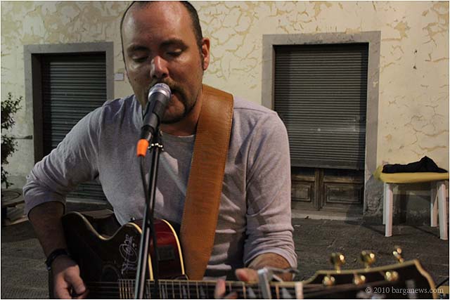 Dopo la serata di lirica e buona cucina di sabato scorso, Piazza Angelio ha ospitato una nuova serata di musica all’aperto sabato 11 settembre, questa volta però cedendo il passo alla musica pop-rock con il chitarrista James Wynne e la voce di Cristiana Mariotti.James Wynne è uno dei talentuosi musicisti che nelle settimane scorse hanno frequentato il masterclass tenuto a Barga da Antonio Forcione, e, dopo una serata di improvvisazioni presso l’Osteria ha deciso di esibirsi di nuovo grazie anche alla disponibilità di Riccardo Negri, che con il suo staff ha riempito la piazza e servito ottimi piatti tipici.
