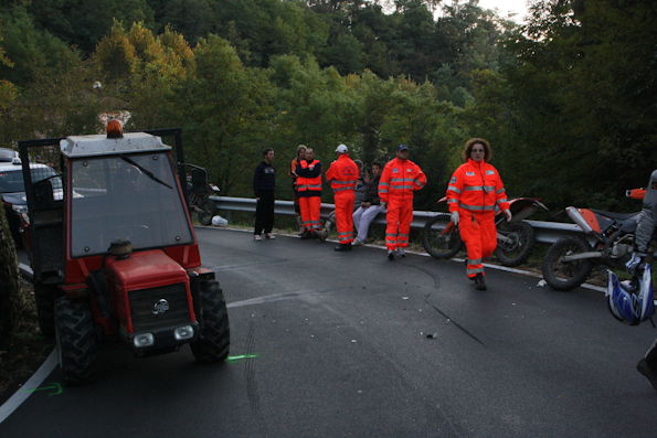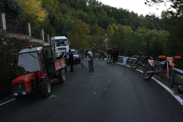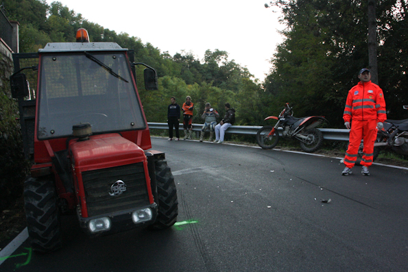 La donna avrebbe affrontato la curva tagliando la strada e si sarebbe trovata davanti il mezzo agricolo centrandolo in pieno. L’urto è stato violento e mentre la moto cadeva a terra la donna è stata sbalzata dalla parte opposta, oltre il guard-rail. Nell’incidente è rimasto coinvolto anche un suo compagno che sopraggiungendo subito dopo non ha potuto evitare la moto a terra ed è caduto a sua volta per fortuna senza grosse conseguenze. E’ stato proprio il suo compagno a cercare di soccorrere la ragazza che era accasciata a terra immobile; le ha tolto il casco e le ha praticato la respirazione bocca a bocca, ma tutti i tentativi sono stati vani. Quando è giunto il medico del 118 la giovane era già deceduta per le gravi ferite riportate nell’impatto tra le quali un ampio trauma toracico.