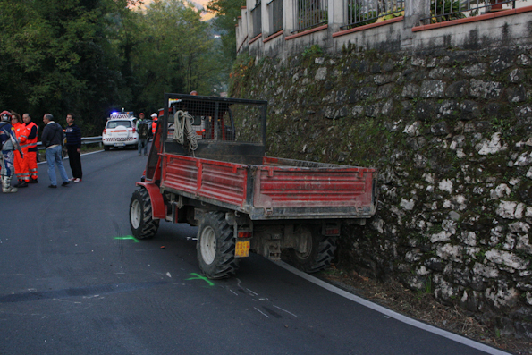 piccolo trattore con cassone che procedeva nella direzione opposta condotto dal muratore Roberto Agostini, 47 anni, residente a Barga
