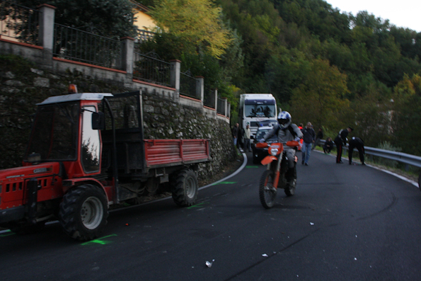 A spiegarci la dinamica dell’incidente è stato lo stesso Agostini: “Stavo rientrando al magazzino per lasciarvi il mezzo quando nell’affrontare la curva due moto enduro a forte velocità mi hanno sfiorato. Erano in mezzo alla strada e così ho deciso di spostarmi ancora di più dalla mia parte per la paura che ne arrivassero altre; non ho fatto in tempo ad accostarmi il più possibile al muro che mi è piombata addosso la moto della ragazza”.