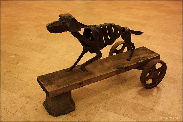 Si tratta di sculture, foto e illustrazioni arrivate rispettivamente da Firenze, Liverpool e New York, grazie al coinvolgimento che si è venuto a creare su un’invisibile rete di artisti che uniscono Barga al mondo. Keane, curatore della mostra barghigiana, ha dunque disposto giusto in questi giorni i nuovi pezzi arrivati: due possenti sculture i bronzo dell’artista fiorentino Daniele Schmiedt raffiguranti un pointer e un bulldog a grandezza naturale; un bellissimo scatto in bianco e nero del fotografo Rory Wilmer, per anni di stanza a Praga ed ora tornato nella sua città di origine, Liverpool; e una divertente illustrazione di Jack Syracuse (New York) raffigurante Bo, il cane di Barak Obama realizzato nello stile in cui il futuro presidente degli Stati Uniti realizzò le celeberrime locandine per la sua campagna elettorale, sostituendo il motto “yes we can” con un più canino “woof”.
