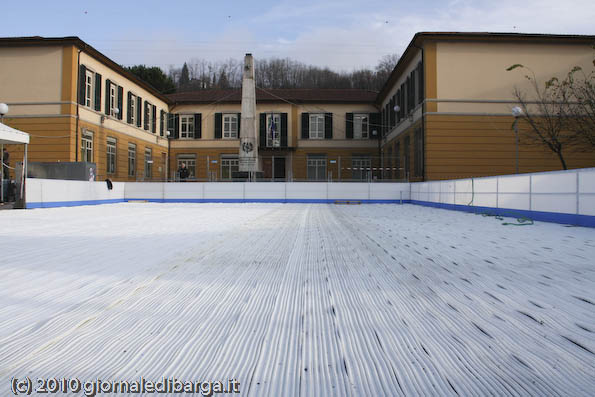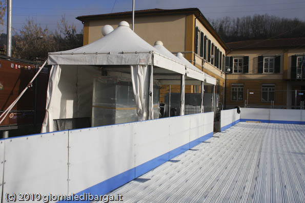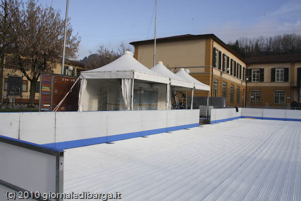 Con la prima giornata senza pioggia -stamani- si sono finalmente alzate le nebbie svelando dei bellissimi Appennini innevati; a Valle, invece, le luci di natale sono già montate da alcuni giorni in attesa delle Feste.Forse farà anche una spruzzata di neve entro la fine della settimana, e, per completare il quadro di una crescente atmosfera natalizia, si sta provvedendo anche a montare la pista da pattinaggio su ghiaccio in quel di Fornaci.Tra ieri e oggi sono stati stesi i tubi refrigeranti, montate le protezioni, e installata una tensostruttura che terrà riparata la biglietteria e i pattinatori in procinto di entrare in pista in modo da avere il massimo comfort; serviranno poi alcuni giorni per creare il manto di ghiaccio necessario per pattinare in sicurezza e poi, finalmente, domenica 28 sarà inaugurata ufficialmente la seconda stagione di una grandissima attrattiva adatta a grandi e piccini, anche se sarà possibile pattinare già da sabato 27.