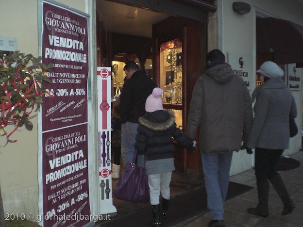 Pomeriggio all’insegna dello shopping quello trascorso domenica 19 dicembre a Fornaci, reso ancora più natalizio – per chi ha voluto cogliere il lato positivo – dalla neve rimasta ai bordi delle strade e sui tetti.Nonostante la temperatura rigida, comunque, tantissimi sono arrivati in paese per acquistare gli ultimi regali di Natale, anche al mercato ambulante straordinario, allestito nell’area abituale di via Enrico Medi. Per chi fosse rimasto a casa o avesse dimenticato l’ultimo oggetto, ricordiamo che i negozi del Centro Commerciale Naturale rimarranno aperti anche nelle sere di martedì 21, mercoledì 22 e giovedì 23 dicembre, così come i negozi di Barga e Ponte all’Ania.