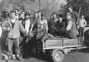 (Nella foto un gruppo di cacciatori al cinghiale di Barga negli anni ’70)