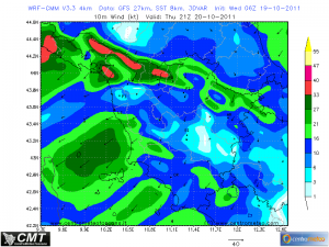 A seguito del passaggio dell’asse di saccatura, si attiveranno correnti di Tramontana (siamo intorno alle ore 16 di domani pomeriggio) che spazzeranno definitivamente via le nubi (foto tratta dal Lam del CentrometetoToscana).
