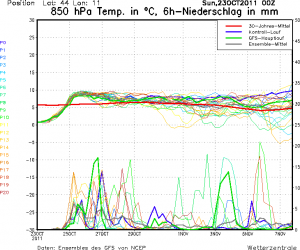 Nella foto possiamo vedere il grafico “spaghetti” incentrato su Firenze: si nota come, a partire dal giorno 25, le probabilità di precipitazioni aumentino decisamente, la porta atlantica si aprirà ed una serie di perturbazioni interesseranno le nostre zone con molte nubi e piogge anche consistenti, una vera manna dal cielo per rientrare in media pluviometrica.
