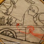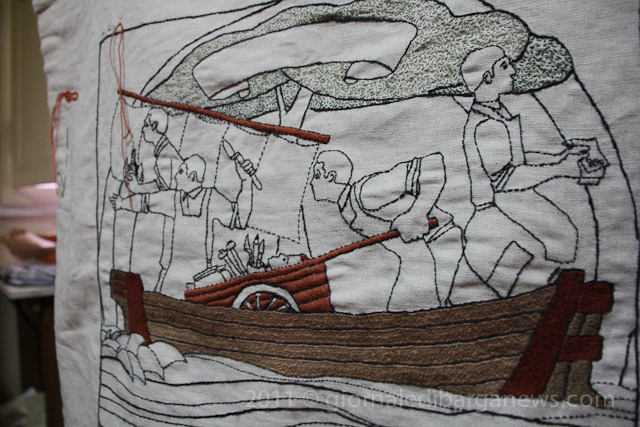 “The Scottish Diaspora Tapestry – a completely new work depicting the events of the Scottish diaspora. Barga with its long history of movement between the city and Scotland has been given the chance to contribute to this exciting project with a series of embroidered panels in the tapestry. The main design will be done by the Scottish artist Andrew Crummy who will print his finished image onto the linen panels and which along with the needles, wool and thread will then sent to the volunteers so that they can start work stitching the final panels.”