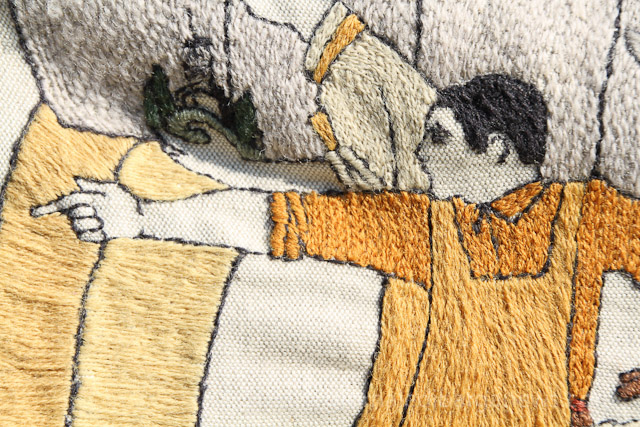 Finalmente è pronto, completo in ogni sua parte, perfettamente ricamato. Parliamo del “Tapestry”, il primo pannello di quel grande ricamo proposto dal Preston Grange Art Festival di Prestonpans che Barga ha realizzato grazie alla buona volontà di tante signore della zona.