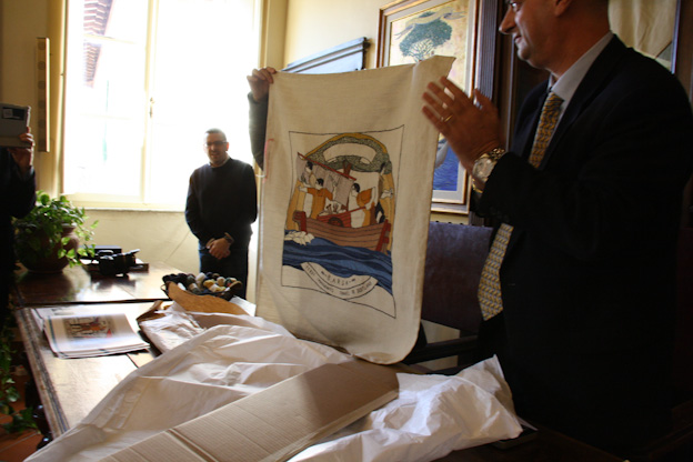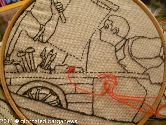 Questa mattina, in sala consiliare, alla presenza del sindaco Marco Bonini e del consigliere delegato alla cultura Giovanna Stefani, assieme a tutte le ricamatrici, è stato dunque presentato il primo lavoro, quello che serve da “prototipo” per dimostrare agli organizzatori la volontà, l’interesse e la capacità di rientrare in questo progetto di grande respiro. Il soggetto è la barca dello stemma di Barga con a bordo i primi figurinai che partirono da questa zona attorno alla fine del 1800.