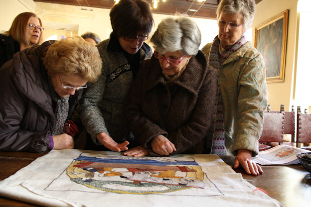 Se il progetto ha incontrato qualche difficoltà all’inizio, con un po’ di timidezza nel mettere le mani su una tela dal disegno tanto grande quanto particolareggiato, alla fine si è formato un bel gruppo di ricamatrici, che a turno e secondo le proprie capacità ha saputo realizzare un magnifico lavoro. Ci piace sottolineare che molte signore si sono messe a disposizione per i lavori che verranno, manifestando anche l’ottima idea di creare dei gruppi di lavoro: uno su tutti il comitato paesano di Sommocolonia, borgo che ha un gran numero di famiglie residenti in Scozia